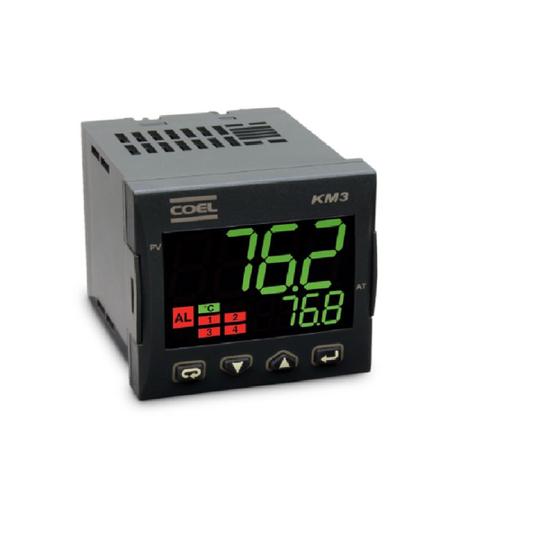 Controlador de processo da família Kube, com até 4 rampas e 4 patamares de controle. Possui temporizador independente com 5 modos diferentes de operação com entrada universal (TC, mV, V, mA, Pt100-Pt1000/PTC-NTC) e até 4 saídas de controle para relés, tensão (VCC) para comandar SSR (relés de estado sólido) até 1 saída analógica de 4 a 20 mA e controle de drivers de servomotores. Wattímetro incorporado indicando estimativa de potência consumida e instantânea. Display de LED de 3 cores dinâmicas e intuitivas que variam de acordo com o valor do processo permitindo o controle visual a longa distância. Possui contador de horas que alerta para a necessidade de manutenção preventiva. Possibilita programar 2 eventos para cada segmento (rampa/patamar), modo de inicialização, modo de encerramento de programa e tecla multifunção. Possui opção de comunicação serial RS485.
